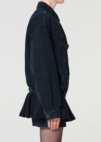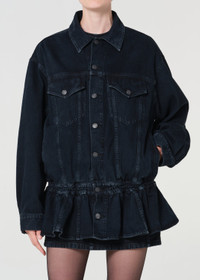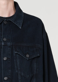 Deep indigo denim jacket with a subtle cinched waist for a relaxed, modern shape. Crafted from weightless, washed-down regenerative cotton, it has a soft, lived-in feel while maintaining clean lines—perfect over casual layers or lightweight knits. This fit is true to size. Looks Like: Deep dark almost black indigo denim jacket with cinch at the waist Feels Like: Non stretch, weightless denim washed down for a super soft feel MORE DETAILS Model is 5'10" and wearing a size Small Fabric: 100% Regenerative Cotton Care Instructions: Machine wash cold inside out with like colors. Do not bleach. Tumble dry low. Made in Turkey with imported materials A5112-1604-ISON