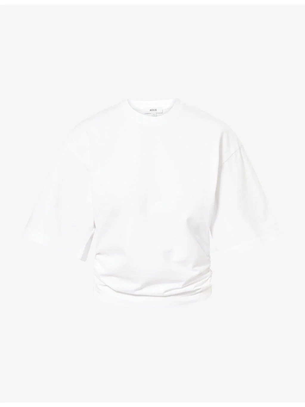 PRODUCT DETAILS - AGOLDE cotton-jersey T-shirt - 100% cotton - Relaxed fit, ribbed round-neck, short sleeves, ruched at sides - Machine wash cold - Made in USA - True to size - Model is 5ft 10in/1.78m and wears a size small - Lightweight, stretchy Ref: R04540935