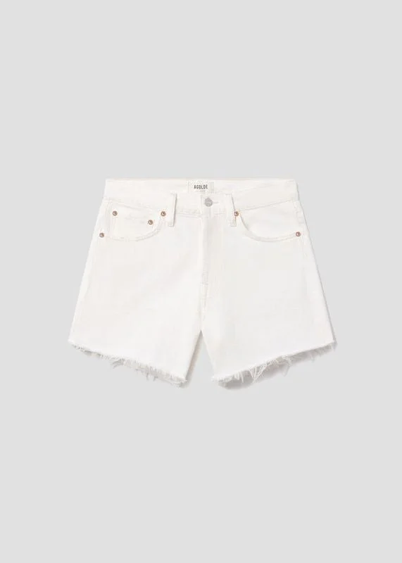 The Parker Long shorts are an evolution of the iconic Parker Short, now featuring a slightly longer inseam for a more relaxed fit. With a high-rise waist and just the right amount of room through the thighs, these shorts offer effortless comfort. Crafted from regenerative cotton, the clean white denim gives a fresh, crisp look. Simple yet elevated, these shorts pair perfectly with everything from casual tees to more polished tops. For the shorter inseam, shop our Parker Short. This fit is true to size. Looks Like: Clean white denim short Feels Like: Rigid, non stretch denim made with an authentic, soft hand feel MORE DETAILS Closure: Button Fly Rise: 11 1/4" Inseam: 4 1/2" Leg Opening: 24 1/2" Model is 5'10" and is wearing a Size 27 Fabric: 100% Cotton Care Instructions: Machine wash cold inside out with like colors. Do not bleach. Tumble dry low. Made in Turkey with imported materials A9010-1183_PANCT