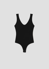 The Tora is a form-fitting tank bodysuit crafted from AGOLDE's signature second-skin fabric, offering a sleek, streamlined silhouette that molds to the body. With its minimalist design, featuring a classic crew neckline, this bodysuit is perfect for layering or wearing solo. The smooth, breathable fabric ensures comfort while its flattering fit pairs effortlessly with high-waisted jeans or skirts for an elevated, everyday look. This fit is true to size. Looks Like: Black scoop front and back bodysuit Feels Like: Lightweight second skin ultra-smooth elastane blend MORE DETAILS Body Length: 25" Chest: 27 1/2" Sweep: 28" Waist: 24 1/2" Model is 5'10" and wearing a size Small Fabric: 73% Polyamide 27% Elastane Care Instructions: Machine wash cold inside out with like colors. Do not bleach. Tumble dry low. Made in USA with imported materials A7372-1460-BLK