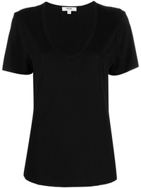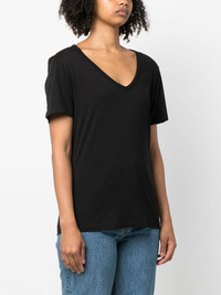 V-neck cotton-blend T-shirt Highlights - Jet black - Cotton blend - V-neck - Short sleeves - Straight hem Made in United States Composition Micromodal 52%, Supima Cotton 48% SIZE & FIT Model measurements Height 5 ft 10 in(1.77 m) Bust/Chest 31.49 in(80 cm) Hips 36.22 in(92 cm) Waist 22.44 in(57 cm) FittingInformation Designed for a slim fit that sits just away from the body offering a close yet comfortable fit Made from a lightweight non-stretch fabric, this piece offers minimal elasticity when worn This piece fits true to size – take your usual size