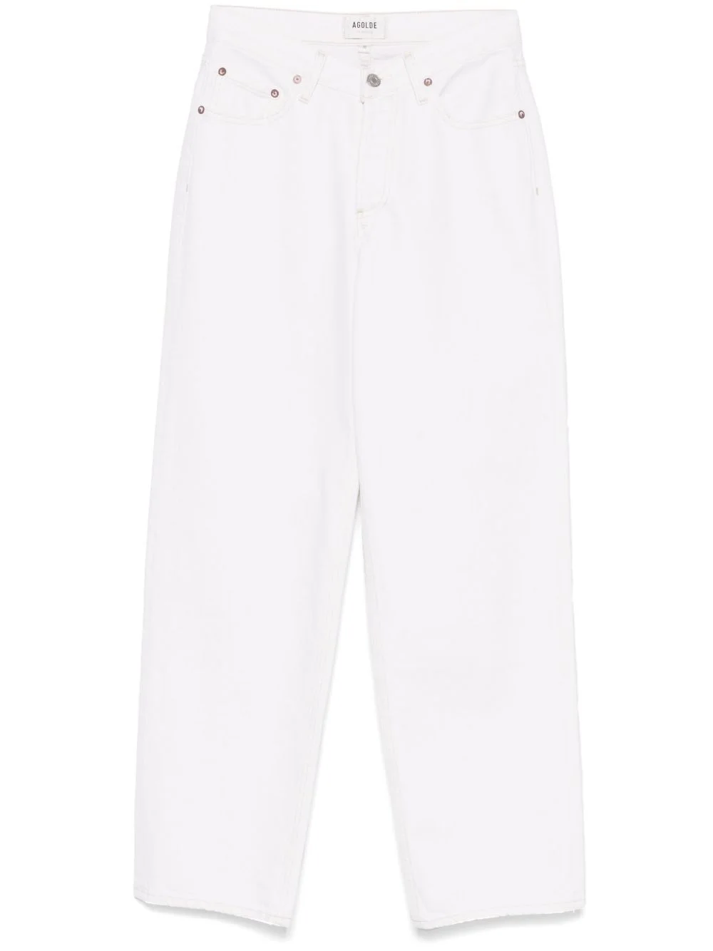 V-Waist Baggy jeans Highlights - White - Button fly fastening - Belt loops - Classic five pockets Imported Composition Regenerative Cotton 100% SIZE & FIT Model measurements Height 5 ft 10 in(1.78 m) Bust/Chest 31.49 in(80 cm) Hips 37 in(94 cm) Waist 23.62 in(60 cm) FittingInformation Designed for a straight-leg fit, these jeans allow for a close fit at the waist and an unrestricted and comfortable fit over the leg Constructed from stretch denim, this piece offers a stretch fit with durability