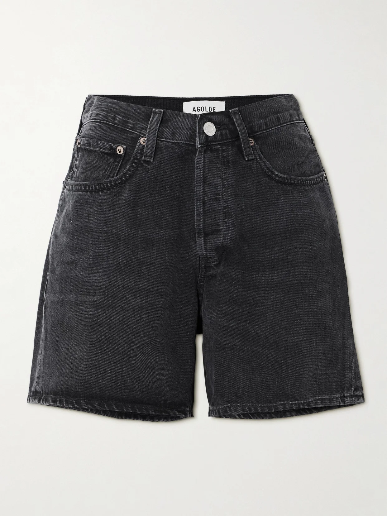 AGOLDE's 'V-Waist' shorts are so-named for the subtle shaped high waist. They're made from denim and faded throughout for a lived-in look. Large to size. See Size & Fit notes. Lower-Impact Materials. This product is made using at least 50% lower-impact materials or ingredients. Find out more about our NET SUSTAIN criteria here.
