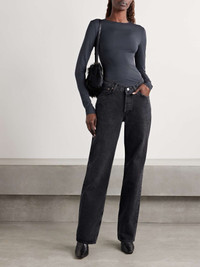 AGOLDE updates its best-selling 'Kelly' jeans with a V-shaped waistband for Spring '25. Cut from subtly faded black denim, they're designed with a high rise and classic straight legs. Lower-Impact Materials. This product is made using at least 50% lower-impact materials or ingredients. Find out more about our NET SUSTAIN criteria here. Size & Fit - Fits true to size, take your normal size - High-rise, cut for a straight leg fit - Mid-weight, non-stretchy denim - Size 27 jeans have an inside leg of 32"/ 81cm - Model is 175cm/ 5'9" and is wearing a size 27 Details & Care - Black denim - Partially concealed button fastenings along front - 100% regenerative cotton - Machine wash - Designer wash: Decibel - This product has been made with regenerative cotton, supporting holistic farming practices that increase soil health, improve biodiversity and reduce carbon emissions