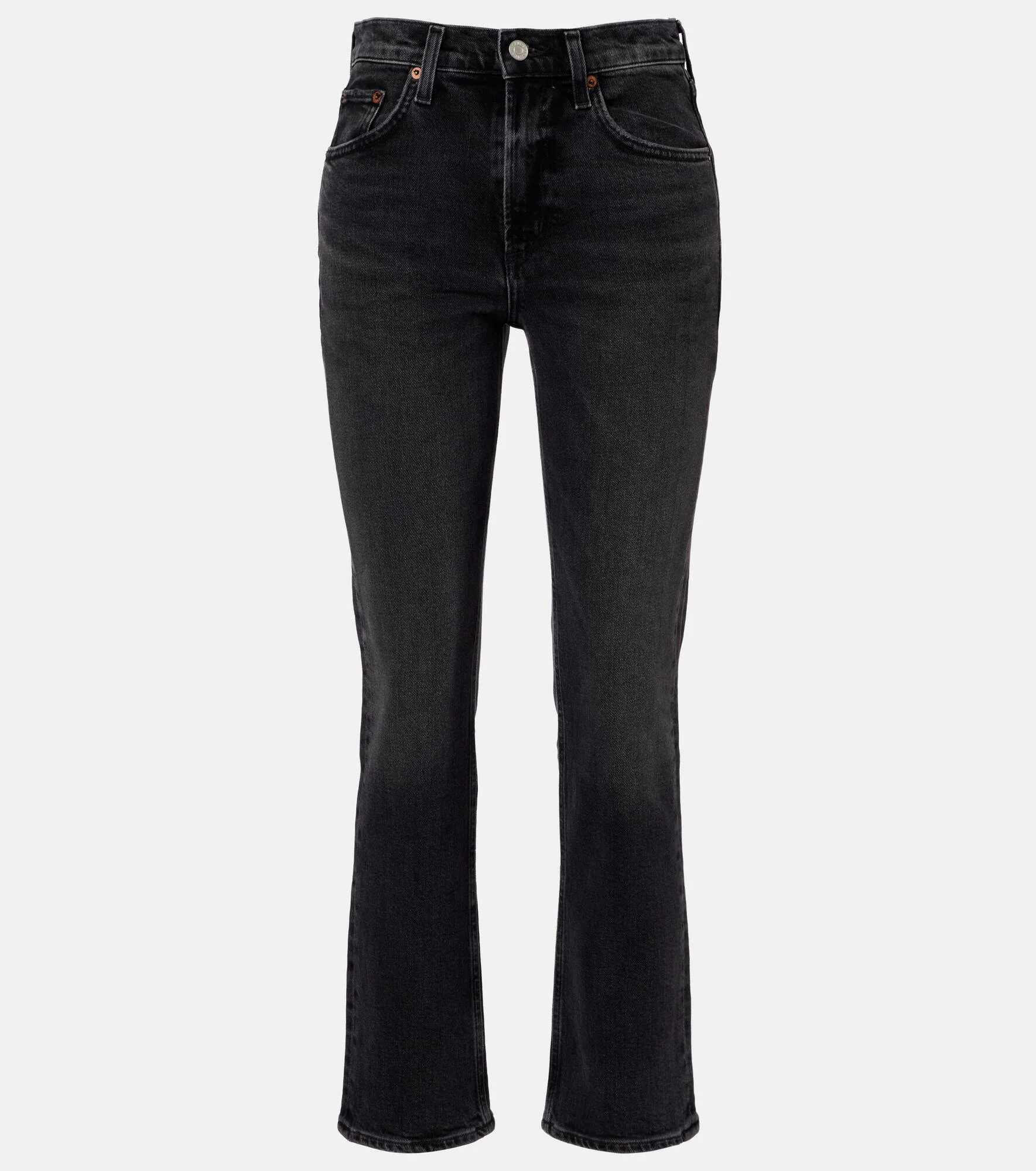 Setting the modern denim standard, every Agolde design is crafted from premium fabric and fit-tested. The Valen jeans are cut to a mid-rise, straight-leg silhouette with 5-pocket styling. Product Details - Material: 99% cotton, 1% elastane - Care instructions: machine wash cold - Made in Turkey - Designer color name: Radius - Item color: black - Closure: zipper fly, button fastening - Pockets: five pockets - Belt loops - Item number: P01115521 Size & Fit - True to size - Non-stretchy fabric - Straight leg - Mid-rise - The model seen in the picture is 178cm-5'10" and wearing a size 27