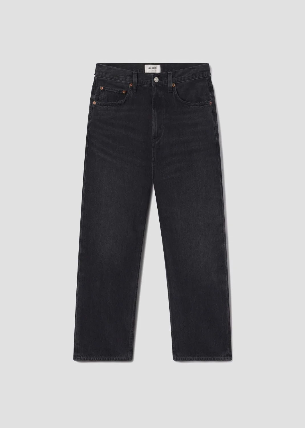 The Valen is a mid-rise vintage straight jean with an ankle-grazing inseam and a flattering square top block. Crafted from regenerative cotton, these non-stretch jeans offer a structured, yet comfortable fit. Pair with a relaxed tee or tailored blouse for an easy, elevated look that exudes effortless style This fit is true to size. Looks Like: Saturated washed black denim with whiskering Feels Like: Rigid, non stretch cotton denim with a soft hand for all day wearability MORE DETAILS Closure: Zipper Fly Rise: 11" Inseam: 28 1/2" Leg Opening: 15" Model is 5'10" and is wearing a Size 27 Fabric: 100% Organic Cotton Care Instructions: Machine wash cold inside out with like colors. Do not bleach. Tumble dry low. Made in Turkey with imported materials A195-1157-HICH