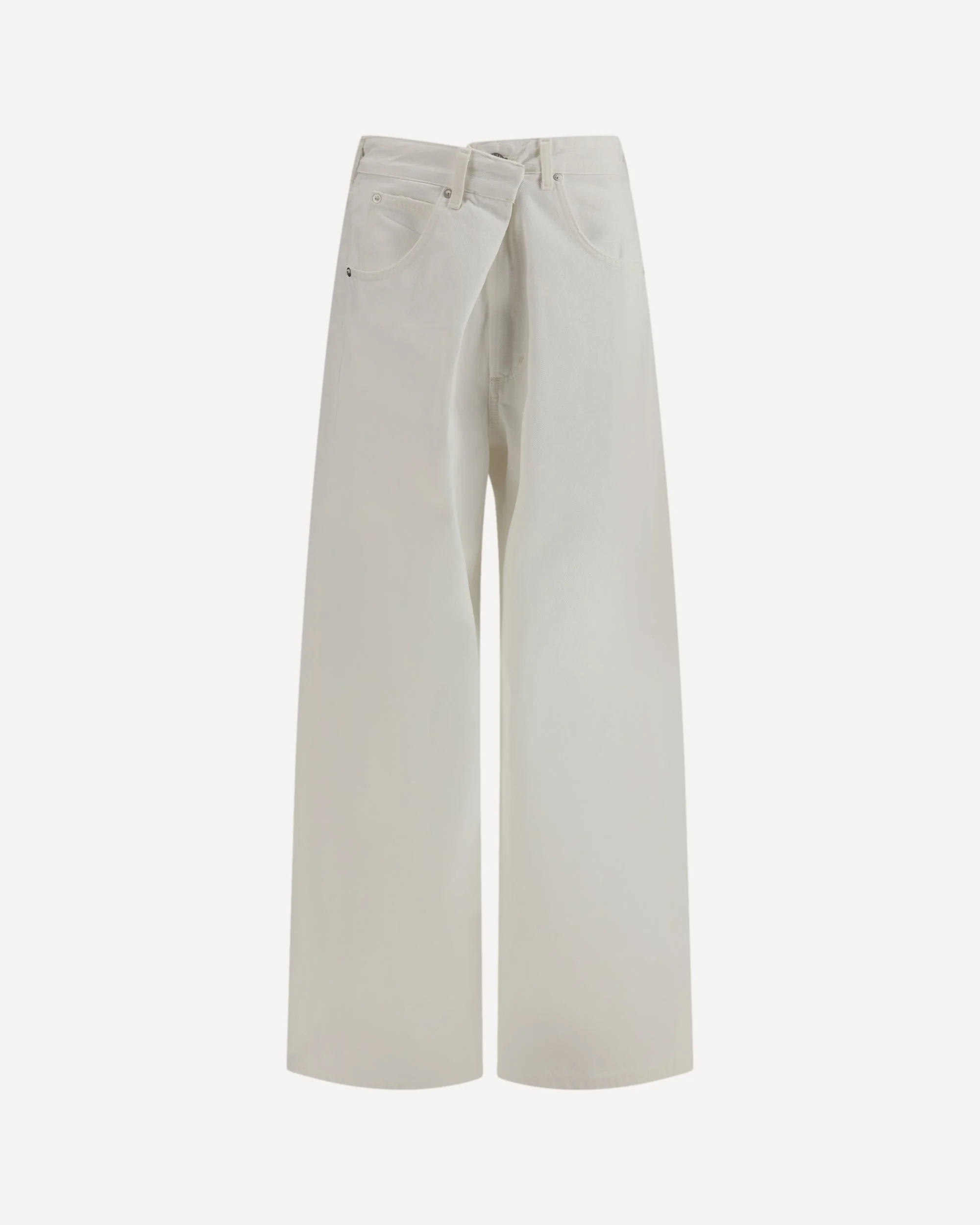 The Vana Fold Jeans by Agolde, crafted from white regenerative cotton denim that blends style with sustainability. The signature “fold” closure, low-slung rise, and full, roomy leg define its effortlessly oversized silhouette. Clean and modern, this piece pairs easily with a graphic tee and sneakers or a breezy button-up and slides for a relaxed, sunny-day look. DETAILS - Sku: A2411183_MSHAK - Season: SS26 - Fit: Oversize - Composition: GENERAL 100% Cotton - MADE IN TURKEY