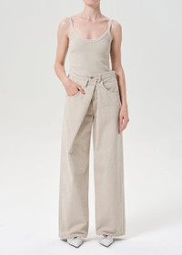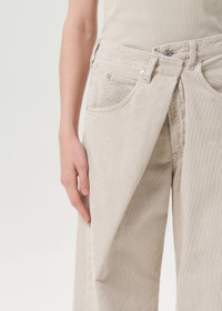 An instant best-seller, the Vana Jean makes a bold impression with it's signature fold-over waistband. Designed with a mid rise and intentionally oversized, relaxed fit, this style is crafted from rigid regenerative cotton for a soft yet structured feel. Pair it with a second-skin tank or an undone button-down for effortless impact. This fit is true to size. For a shorter inseam, shop the Vana Fold Jean Petite 28" Looks Like: Light beige corduroy pant with fold detailing at the waistband Feels Like: Super soft and luxe vintage corduroy MORE DETAILS Closure: Zipper Fly Rise: 13 1/2" Inseam: 31 1/2" Leg Opening: 23" Model is 5'10" and is wearing a Size 27 Fabric: 100% Cotton Care Instructions: Machine wash cold inside out with like colors. Do not bleach. Tumble dry low. Made in Turkey with imported materials A279-1832-RCGR