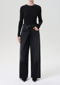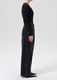 The Vana Fold Jean is a high-rise, relaxed baggy jean with a cropped 28.5" inseam designed for a proportioned petite fit. Cut from weightless, non-stretch denim, it offers a soft, worn-in feel with structured fold detailing at the waistband. Arcane is a washed-out black with subtle fading and marbling, giving the silhouette a lived-in edge—ideal paired with fitted tops or layered knits for balance. This fit is true to size. For a longer inseam, shop the Vana Fold Jean. Looks Like: Dark worn in, washed out black denim pant with fold detailing at the waistband Feels Like: Non stretch, weightless denim washed down for a super soft feel MORE DETAILS Closure: Zipper Fly Rise: 13 1/2" Inseam: 28.5" Leg Opening: 23" Fabric: 100% Regenerative Cotton Care Instructions: Machine wash cold inside out with like colors. Do not bleach. Tumble dry low. Made in Turkey with imported materials A262-1817-ARNE