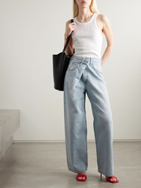 When it comes to denim trends, AGOLDE sets the pace - we predict these 'Vana' jeans will become just as popular as the brand's iconic 'V-Waist' styles. They have a draped front that creates a cool pleated effect and relaxed, wide legs. Lower-Impact Materials. This product is made using at least 50% lower-impact materials or ingredients. Find out more about our NET SUSTAIN criteria here. Size & Fit - Fits true to size, take your normal size - Low-rise, cut for a wide-leg fit - Mid-weight, non-stretchy denim - Size 26 jeans have an inside leg of 31.5"/ 80cm - Model is 177cm/ 5'10" and is wearing a size 26 Details & Care - Light-blue denim - Concealed button, zip and hook fastening at front - 100% regenerative cotton - Machine wash - Designer wash: Spark -This product has been made with regenerative cotton, supporting holistic farming practices that increase soil health, improve biodiversity and reduce carbon emissions
