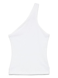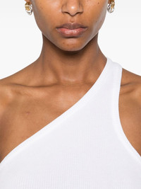 one-shoulder top Highlights - White - Ribbed knit - Sleeveless - Straight hem Made in United States Composition Organic Cotton 49%, Lyocell 49%, Elastane 2% SIZE & FIT Model measurements Height 5 ft 11 in(1.8 m) Bust/Chest 31.49 in(80 cm) Hips 35.82 in(91 cm) Waist 24.8 in(63 cm) FittingInformation Designed for a slim fit that sits just away from the body offering a close yet comfortable fit Made from a midweight non-stretch fabric, this piece offers minimal elasticity when worn