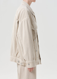 Oversized and tactile, the silhouette adds a laid-back structure to tonal dressing, perfect for pairing with everything from matching cords to denim. Looks Like: Light beige oversized corduroy jacket Feels Like: Super soft and luxe textured corduroy MORE DETAILS Body Length: 30" Shoulder to Shoulder: 25 3/8" Sleeve Length: 23" Model is 5'10" and wearing a size Small Fabric: 100% Cotton Care Instructions: Machine wash cold inside out with like colors. Do not bleach. Tumble dry low. Made in USA with imported materials A5111-1840-RICEG