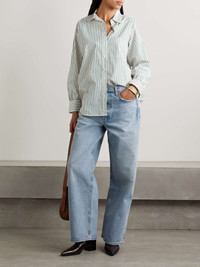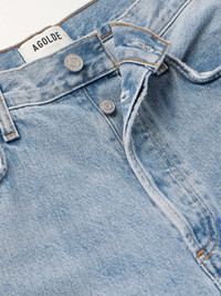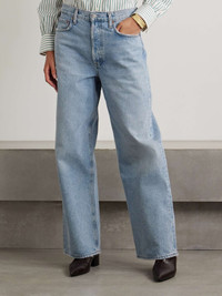 EDITORS'NOTES AGOLDE's boyfriend jeans are designed for a slouchy, 'Baggy' fit and sit low on the hips, much like pairs from the '90s. They have slightly wide legs to enhance the relaxed feel. Wear yours with sneakers or dress them up with boots. Lower-Impact Materials. This product is made using at least 50% lower-impact materials or ingredients. Find out more about our NET SUSTAIN criteria here. SIZE & FIT - Fits true to size, take your normal size - High-rise, cut for a wide-leg fit - Mid-weight, non-stretchy denim - Size 27 jeans have an inside leg of 29"/ 76cm - Model is 180cm/ 5'11" and is wearing a size 27 DETAILS & CARE - Light-blue denim - Partially concealed button fastenings along front - 100% regenerative cotton - Machine wash - Designer wash: Force - This product has been made with regenerative cotton, supporting holistic farming practices that increase soil health, improve biodiversity and reduce carbon emissions