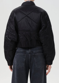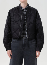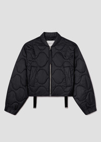 The ultimate layering piece from the West Coast to East London. Iona Quilted Jacket will layer on to your everyday rotation to create a versatile statement silhouette. Crafted from nylon ripstop and lightly quilted with recycled fibers, it’s cut to a bomber-inspired silhouette with voluminous sleeves. Note the internal signature harness, so you can wear off-shoulder or just carry with you if the sun comes back out. This style fits true to size. Looks Like: True black, branded SSC hardware and CF zipper Feels Like: Water-repellent finish with lightweight transition fill PLEASE NOTE: Due to the nature and delicacy of this style, each jacket will ship in its individual box separate from other items if multiple pieces are ordered. MORE DETAILS Body Length: 21" Shoulder to Shoulder: 20 1/2" Sleeve Length: 23 1/2" Model is 5'10" and wearing a size Small Fabric: 100% Nylon Care Instructions: Dry clean only. Made in Vietnam with imported materials A5031-BLK