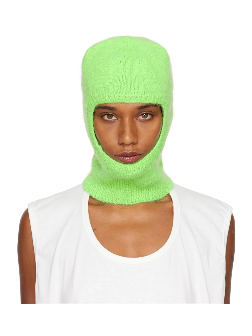 Knit mohair-blend balaclava in green. Rib knit trim at opening. Face masks and face coverings are final sale and are not eligible for return or exchange. Supplier color: Green 55% merino wool, 45% cotton. Made in Albania 222319F014001