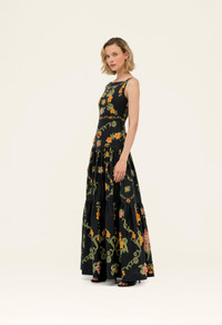 Our ’Abeja Cordillera’ Maxi Dress features a high square neckline and a slim, sleeveless silhouette, this piece is designed to flow effortlessly through the seasons. Crafted from 100% linen with delicate embroidery throughout, it offers endless styling possibilities. Day to night, summer to fall. - Novelty piece - Maxi Dress - Sleeveless - Drop waist - Embroidered - Square neckline - Linen - Placement Print COMPOSITION 100% Linen Lining: 100% Cotton SIZE & FIT Zhenya is 175 cm / 5’9’’ and is wearing a size extra small