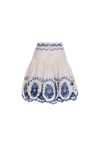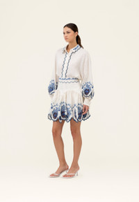 The ´Asai Wild´ is a new addition to our selection of mini skirts. Shaped with a flattering fitted panel and gathers across the hips for extra volume In white and blue hues, this piece becomes perfect for al fresco brunches with our ´Abadia Wild´. - Concealed zip fastening - Embroidered Linen - Mini Skirt - Novelty COMPOSITION 100% Linen SIZE & FIT Jessica is 177 cm / 5´8 and is wearing a size extra small.