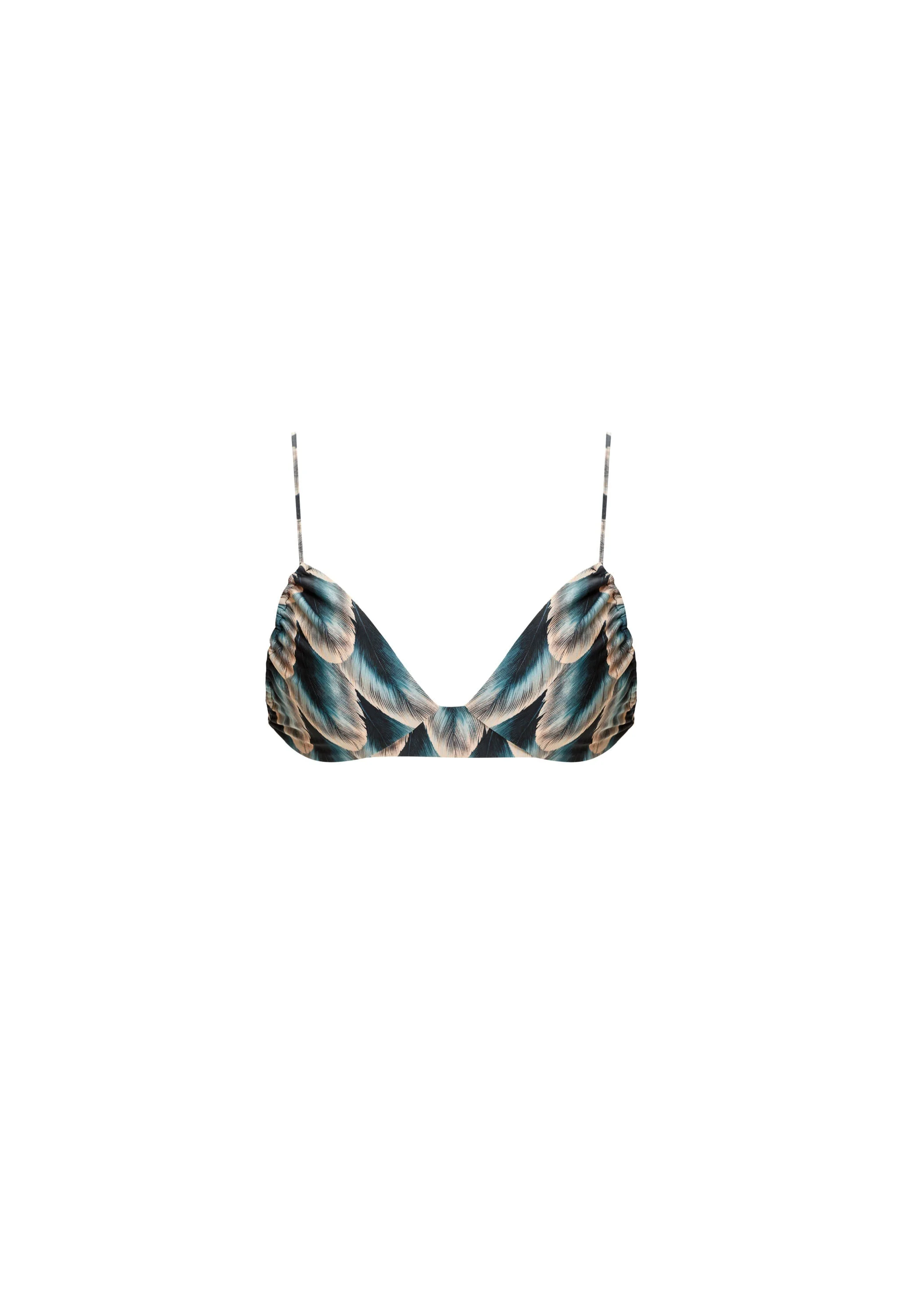 Flattering and feminine, our new 'Teresa Pluma' bikini top goes flawlessly with our 'Vaiven Pluma' bikini bottom and our matching 'Lavanda Pluma' pareo. This piece is made using recycled polyester. Our swimwear garments offer up to UPF 50 sun protection. COMPOSITION 81% Recycled Polyester 19% Elastane SIZE & FIT Sasha is 5´9 / 180 cm and is wearing a size Extra Small