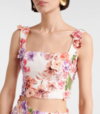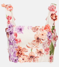 Amanda floral-appliqué linen crop top