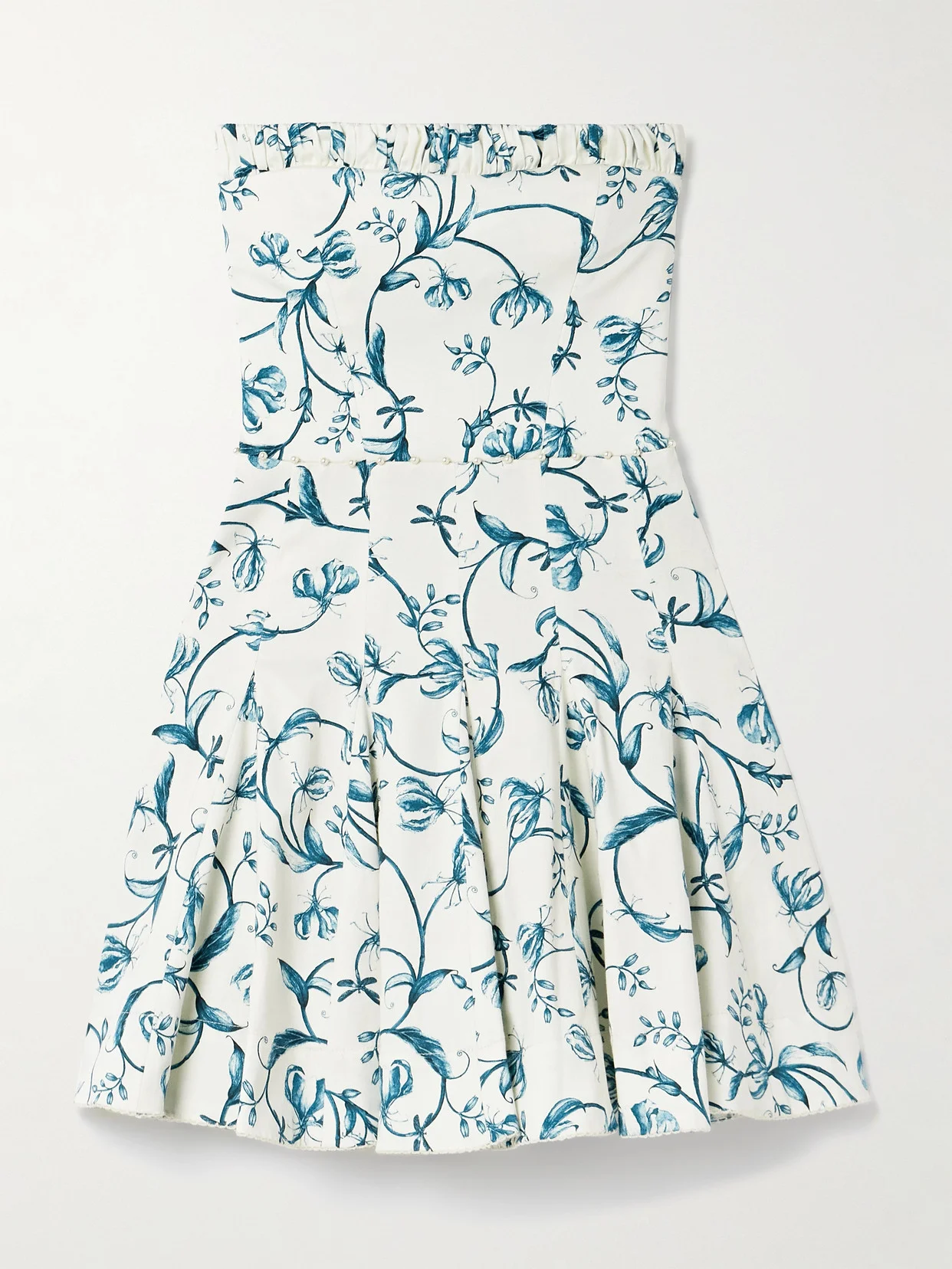 Caudal Gloriosa Strapless Embellished Floral-print Cotton-blend Mini Dress