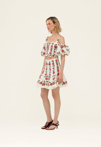 Our ’Cerezo Quebrada’ mini skirt in linen featuring thoughtfully placed embroidery that transforms it into a true statement piece. Pair it with the Epoca Quebrada top for a flawless look - Mini skirt - Embroidered - Concealed zip fastening along the back COMPOSITION 100% Linen Lining: 100% Linen SIZE & FIT Zhenya is 175 cm / 5’9’’ and is wearing a size extra small