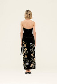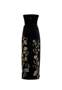 A recent yet ultimate favorite addition, our ’Cinefila Laguna’ maxi dress in cotton velvet is the perfect night celebration attire, with full embroidery and delicate appliques with the perfect bow detail on the side, this piece becomes the epitome of sophistication. - Cotton velvet - Maxi dress - Fully embroidered and delicate appliques - Bow detail on the side - Lining included - Concealed zip fastening at back COMPOSITION 97% Cotton 3% Elastane Lining: 100% Cotton SIZE & FIT Zhenya is 175 cm / 5´9´´ and is wearing a size extra small