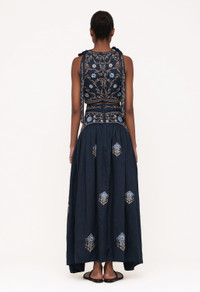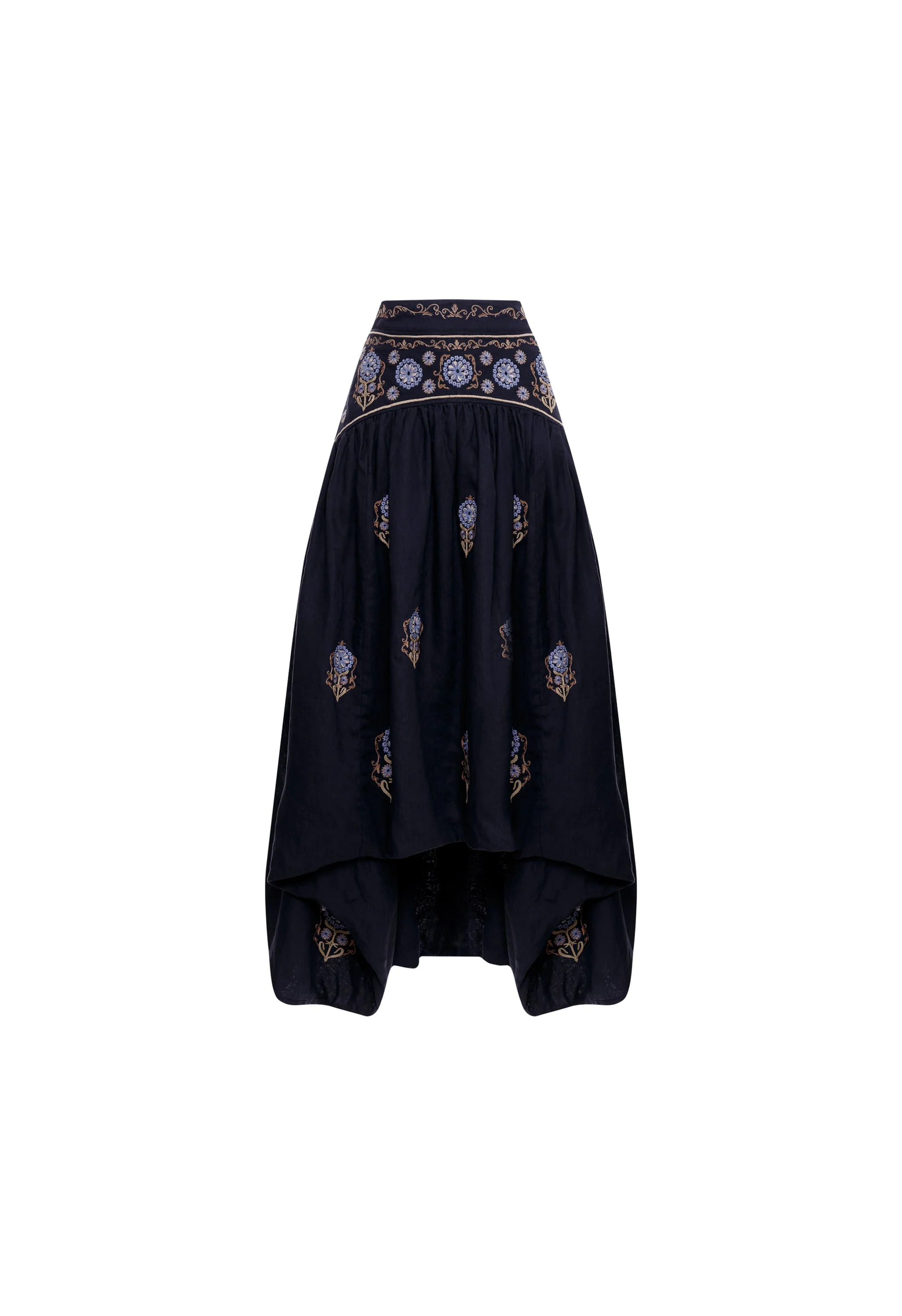 Made in 100% linen, the new 'Curua Mosaico' high-waisted maxi skirt features exquisite embroidery throughout, a chic high low hem, and concealed zip fastening along the back. Complete this fabulous look with our 'Olmeca Mosaico' crop top. COMPOSITION 100% Linen SIZE & FIT Yinny is 5´8 / 179 cm and is wearing a size Extra Small
