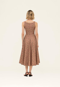 With a lovely square neckline, fitted waist and a billowing A-line skirt. Our ’Frontera Quebrada’ midi dress in linen will make any day into a special occasion. With it’s timeless look and delicate print it will become your go to dress for the season. - Square neckline - Fitted waist - A-line skirt - Midi Dress COMPOSITION 100% Cotton Lining: 100% Cotton SIZE & FIT Zhenya is 175 cm / 5’9’’ and is wearing a size extra small