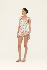A season favorite, our ´Gatti Mosqueta´ linen shorts feature delicate floral illustrations and concealed zip fastening along the back. Complete the look with our ´Agar Mosqueta´ linen blouse. - Best seller - Carry over - Concealed zip fastening along the back COMPOSITION 100% Linen SIZE & FIT Jessica is 177 cm / 5´8 and is wearing a size extra small