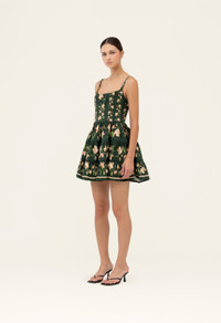 The ´Granadilla Orquidea´ mini dress has a square neckline, delicate shoulder straps, and a gathered skirt for a flattering fit. Made from a stretch cotton blend, it closes with a hidden zip at the back. Unlined for a light, comfortable feel. - Sleeveless - Shoulder straps - Square neck - Gathered skirt - Concealed zip fastening along back COMPOSITION 97% Cotton, 3% Elastane SIZE & FIT Jessica is 177 cm / 5´8 and is wearing a size extra small.