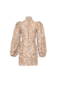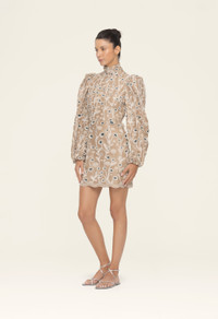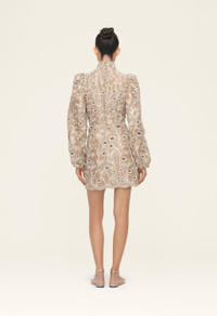 Fall in love with our 'Guaba Pealo' mini dress. Made from breezy linen, this piece features gorgeous balloon long sleeves, an elegant high neckline, and concealed zip fastening along the back. - Special fabric - Best seller - Lining included - Balloon long sleeves - Concealed zip fastening COMPOSITION 100% Linen SIZE & FIT Mila is 1'77 cm / 5'9 and is wearing a size extra small