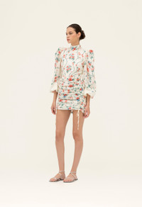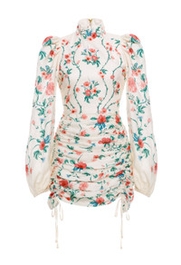 Fall in love with our ´Guaba Mosqueta´ mini dress. Made from breezy linen and breathtaking illustrations, this piece features gorgeous balloon long sleeves, an elegant high neckline, and concealed zip fastening along the back. - Best seller - Carry over - Mini length - Balloon long sleeves - Concealed zip fastening along back COMPOSITION 100% Linen SIZE & FIT Jessica is 177 cm / 5´8 and is wearing a size extra small