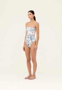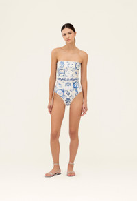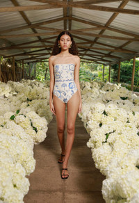 Our ´Ilusion Wild´ is an elegant strapless bathing suit that features handmade embroidery in the waistband. Perfect for poolside lounging and sand-filled days alike, this piece is as sophisticated as it is versatile. Pair it with our ´Lavanda Wild´ for an impeccable beach ensemble. - Hand Embroidered - Strapless - Lining included - Made from recycled polyester - UPF 50+ sun protection COMPOSITION 81% Recycled Polyester, 19% Elastane SIZE & FIT Jessica is 177 cm / 5´8 and is wearing a size extra small.