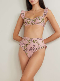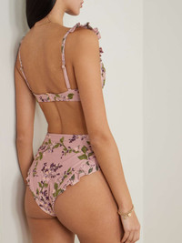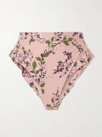 EDITORS'NOTES Agua by Agua Bendita's signature 'Jengibre' bikini bottoms are reimagined this season with a delicate floral 'Wisteria' print. Detailed with ruffled trims, they've been made in Colombia from sculpting fabric and cut for a high-rise fit that offers medium coverage. Wear yours with the matching 'Kiwi' top. Lower-Impact Materials. This product is made using at least 50% lower-impact materials or ingredients. Find out more about our NET SUSTAIN criteria here. SIZE & FIT Model measurements: - Fits true to size, take your normal size - High-rise briefs with medium coverage - Model is 175cm/ 5'9" and is wearing a size XSmall - Bust: 75cm/ 29.5" - Waist: 63cm/ 25" - Hip: 91cm/ 36" DETAILS & CARE - Multicolored stretch recycled-polyester - Pull on - 81% recycled polyester, 19% elastane - Hand wash - Lotion, sunscreen, oil and chlorine can cause discoloration of this item; this is not a manufacturing defect. Please follow care instructions to keep your swimwear in the best condition
