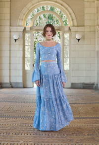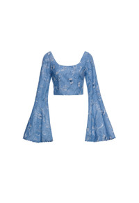 Our ´Limoncillo Lymanopoda´ is a stylish linen crop top with long bell sleeves, a scoop neckline, and concealed zip fastening along the back. Pair yours with our ´Anis Lymanopoda´ skirt for an impeccable ensemble. - Delicately placed embellishments - Carry over - Bell sleeves - Scoop neckline - Lining included - Concealed zip fastening along back COMPOSITION 100% Linen SIZE & FIT Isabella is 179 cm / 5´9 and is wearing a size extra small