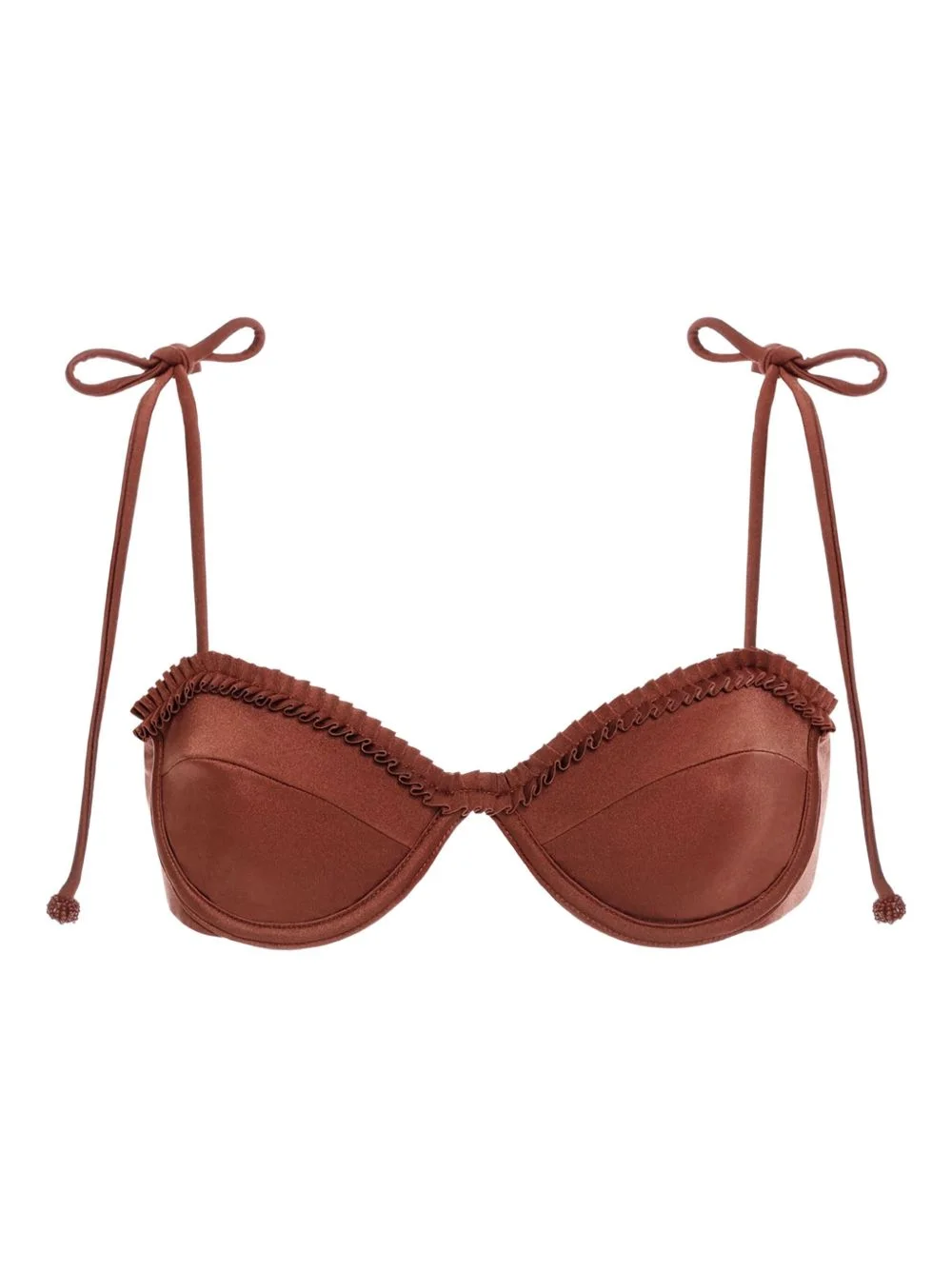 Madelyn ruffled-trim bikini top Highlights - Brown - Ruffled trim - Tie straps - Underwire support - Clasp fastening - Be mindful to try on swimwear over your own garments. Imported Composition Polyamide 100%, Elastane 100% Washing instructions Read Manufacturer Guidelines