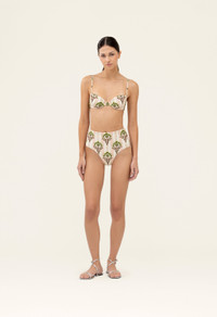 Our ´Magenta Moriche´ is a chic hand-embroidered high-waisted bikini bottom that beautifully accentuates curves. Pair it with the ´Magdalena Moriche´ bikini top for a flawless ensemble. This piece is made from recycled polyester. Our swimwear garments offer up to UPF 50 sun protection - Hand-embroidered - High waisted - Lining included - Made from recycled polyester - UPF 50+ sun protection COMPOSITION 81% Recycled Polyester, 19% Elastane SIZE & FIT Jessica is 177 cm / 5´8 and is wearing a size extra small.