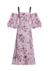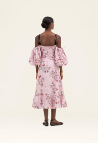 Fall in love with our new ´Mercedes Honeysuckle´ midi dress, a charming linen garment with pretty off-the-shoulder balloon sleeves, a lovely flounced hemline, and button closures along the back. - Delicately placed embellishments - Carry over - Off the shoulder - Balloon sleeves - Midi length - Flounced hemline - Lining included - Button closures along the back COMPOSITION 100% Linen SIZE & FIT Isabella is 179 cm / 5´9 and is wearing a size extra small