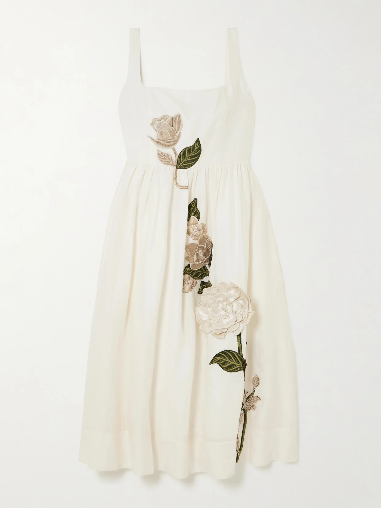 Miramar Gardenia Appliquéd Linen Midi Dress