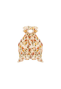 Our best-selling 'Nardo Clementina' cropped halter top is made of 100% linen, with sweet ruffles at the hem and neck and tie fastening at the back. Create a flawless look with our 'Cerezo Clementina' mini skirt. COMPOSITION 100% Linen SIZE & FIT Yinny is 5´8 / 179 cm and is wearing a size Extra Small