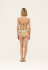 With pretty ruffles adorning the waistline, and delicate embroidering. Our ’Nopal Cordillera’ is a slim-fit bikini bottom that pairs perfectly with our ’Olmo Cordillera’ bikini top. This garment is made using recycled polyester. Our swimwear garments offer up to UPF 50 sun protection. - Best seller - Hand embroidered - Lining included - Ruffles on waistline - Made using recycled polyester - UPF 50 sun protection - High waisted - Placement Print COMPOSITION 81% Recycled Polyester 19% Elastane Lining: 78% Polyamide, 22% Elastane SIZE & FIT Zhenya is 175 cm / 5’9’’ and is wearing a size extra small