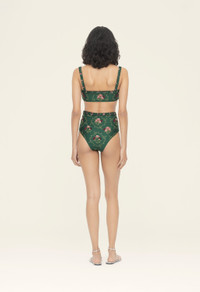 Our Olmo Memoria bikini top has a fabulous square neckline adorned with ruffled trim and exquisite hand-stitched details. Pair it with our Nopal Memoria bikini bottom for an impeccable ensemble. This garment is made using recycled polyester. Our swimwear garments offer up to UPF 50 sun protection. - Embroidered - Best seller - Bold squareneck - Ruffles in straps and along neckline - Lining included - Made from recycled polyester - UPF 50+ sun protection COMPOSITION 81% Recycled Polyester 19% Elastane SIZE & FIT Oriana is 178 cm / 5´10 and is wearing a size extra small.