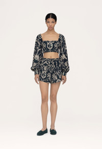 With a striking square neckline and lovely balloon sleeves, our 'Pera Gema' crop top looks stunning with our 'Toronjil Gema' shorts. This garment features concealed zip fastening along the back and was made using recycled viscose. COMPOSITION 68% Recycled Viscose 32% Viscose SIZE & FIT Model is 5´9 / 176 cm and is wearing a size Extra Small