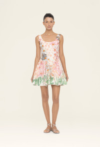 The epitome of femininity, our 'Pluma Jardinera' mini dress in linen features a charming scoop neckline and lovely floral appliques. This piece has button closures along the back. - Applique details - Placement print - Charming scoop neckline - Button closuers - Lining included COMPOSITION 100% Linen SIZE & FIT Mila is 1'77 cm / 5'9 and is wearing a size extra small