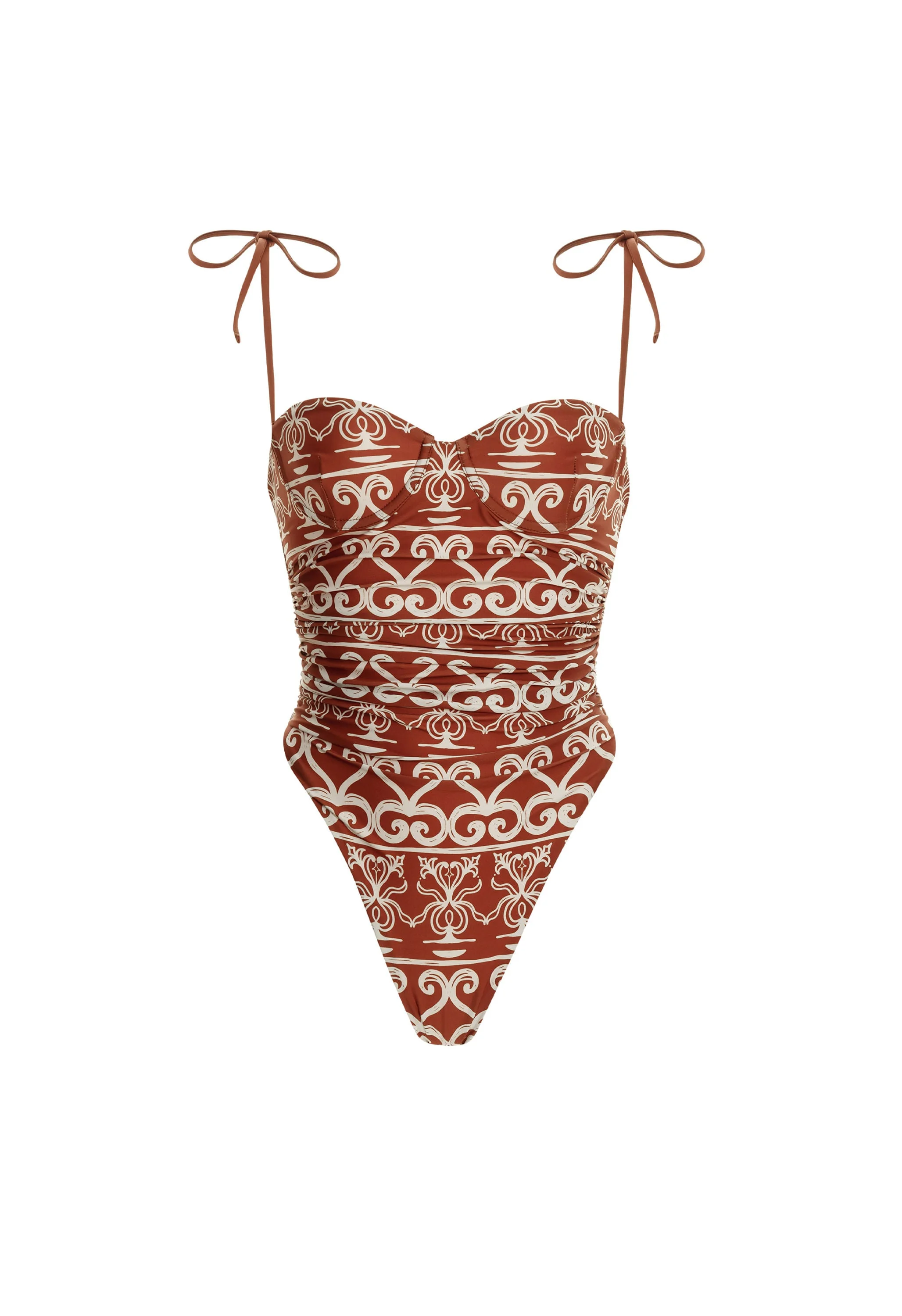 Our 'Rabano Calados' one-piece is a bestselling slip-on bathing suit featuring a sweetheart neckline, dainty self-tie straps, and pleats along the waistline. Wear yours with our 'Orquidea Calados' pareo for an eye-catching look. This garment is made using recycled polyester. Our swimwear garments offer up to UPF 50 sun protection. COMPOSITION 78% Polyamide 22% Elastane SIZE & FIT Yinny is 5´8 / 179 cm and is wearing a size Extra Small