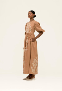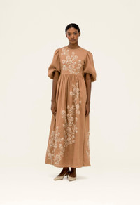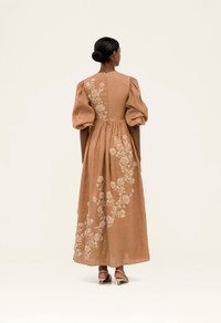 Our ’Raquel Quebrada’ piece is a fully embroidered linen maxi dress in a duo-tone palette, set against a rich mocha base. Its detailed craftsmanship makes this piece an effortless choice for turning everyday moments into something extraordinary. - Embroidered - Carry over - Mini length - Lining included - Concealed zip fastening along back COMPOSITION 100% Linen Lining: 100% Cotton SIZE & FIT Isabella is 179 cm / 5’10’’ and is wearing a size extra small