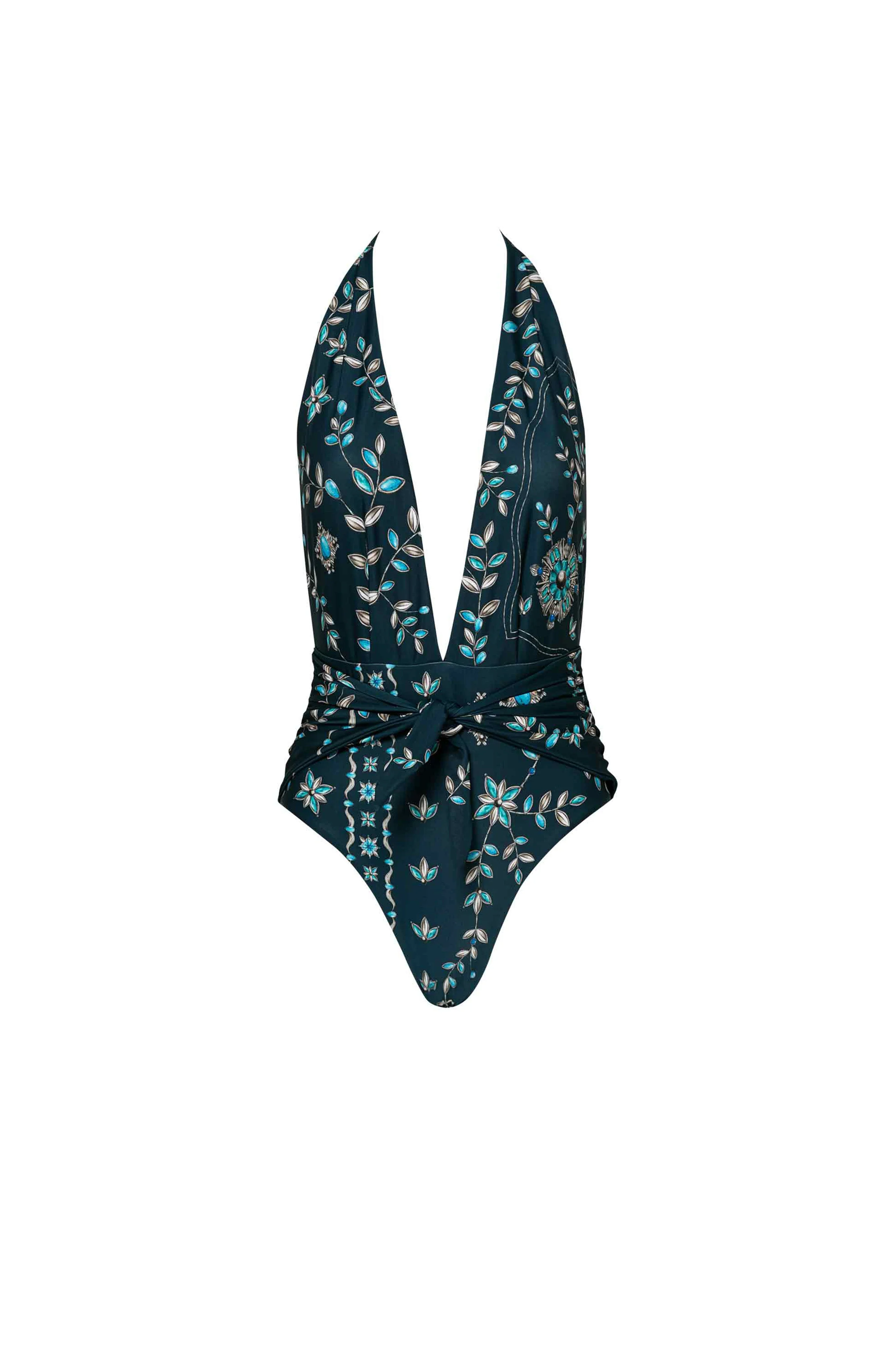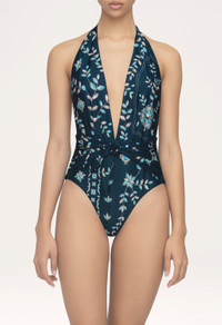 New this season, our 'Salm Relicario' one-piece is an ultra-stylish bathing suit with a flattering bow-tie along the waistline. Pair yours with our 'Oceano Relicatrio' cardigan for a dazzling seaside look. Our swimwear garments offer up to UPF 50 sun protection COMPOSITION 81% Recycled Polyester 19% Elastane SIZE & FIT Model is 5´9 / 176 cm and is wearing a size Extra Small