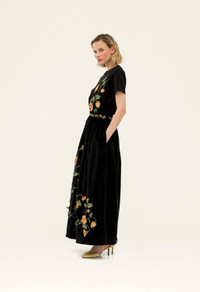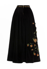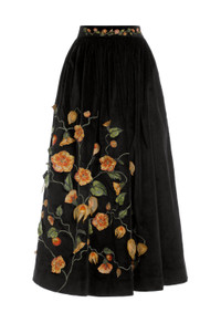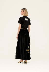 The ’Tangelo Uchuva’ is a new addition to our selection of maxi skirts. In black with golden toned uchuva details, this piece becomes perfect for al fresco brunches with our ’Sama Uchuva’ - Fully embroidered - Appliques - Handmade embroidery on the waistline - Cotton Velvet COMPOSITION 97% Cotton 3% Elastane Lining: 100% Cotton SIZE & FIT Zhenya is 175 cm / 5’9’’ and is wearing a size extra small