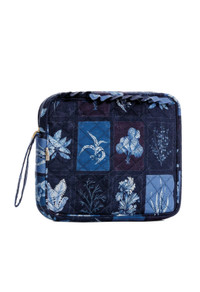 This elegant travel pouch in large, made from recycled leftover fabrics, features a striking botanical print, creating a sophisticated and nature-inspired aesthetic. The quilted design adds texture and durability, while the soft ruffled trim gives it a touch of femininity. With a secure zip closure and a convenient strap, this pouch is perfect for carrying your essentials. Ideal for storing cosmetics, toiletries, or small accessories, the pouch is a versatile accessory for everyone. - Made from leftover fabrics - Size large (27 cm x 22 cm (width x height)) - Quilted fabric - Wrist strap - Ruffled trim - Exterior zipper COMPOSITION 100% Linen SIZE & FIT 27 cm x 22 cm (width x height)