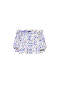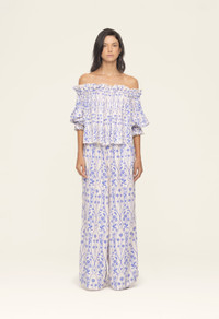 The 'Urucu Petalo' is a sweet off-the-shoulder linen blouse with charming puffed sleeves, and a mini scalloped hem. This garment pairs flawlessly with our 'Pinon Petalo' trousers. - Carry over - Off the shoulder - Puffed sleeves - Mini scalopped hem COMPOSITION 100% Viscose SIZE & FIT Mila is 1'77 cm / 5'9 and is wearing a size extra small